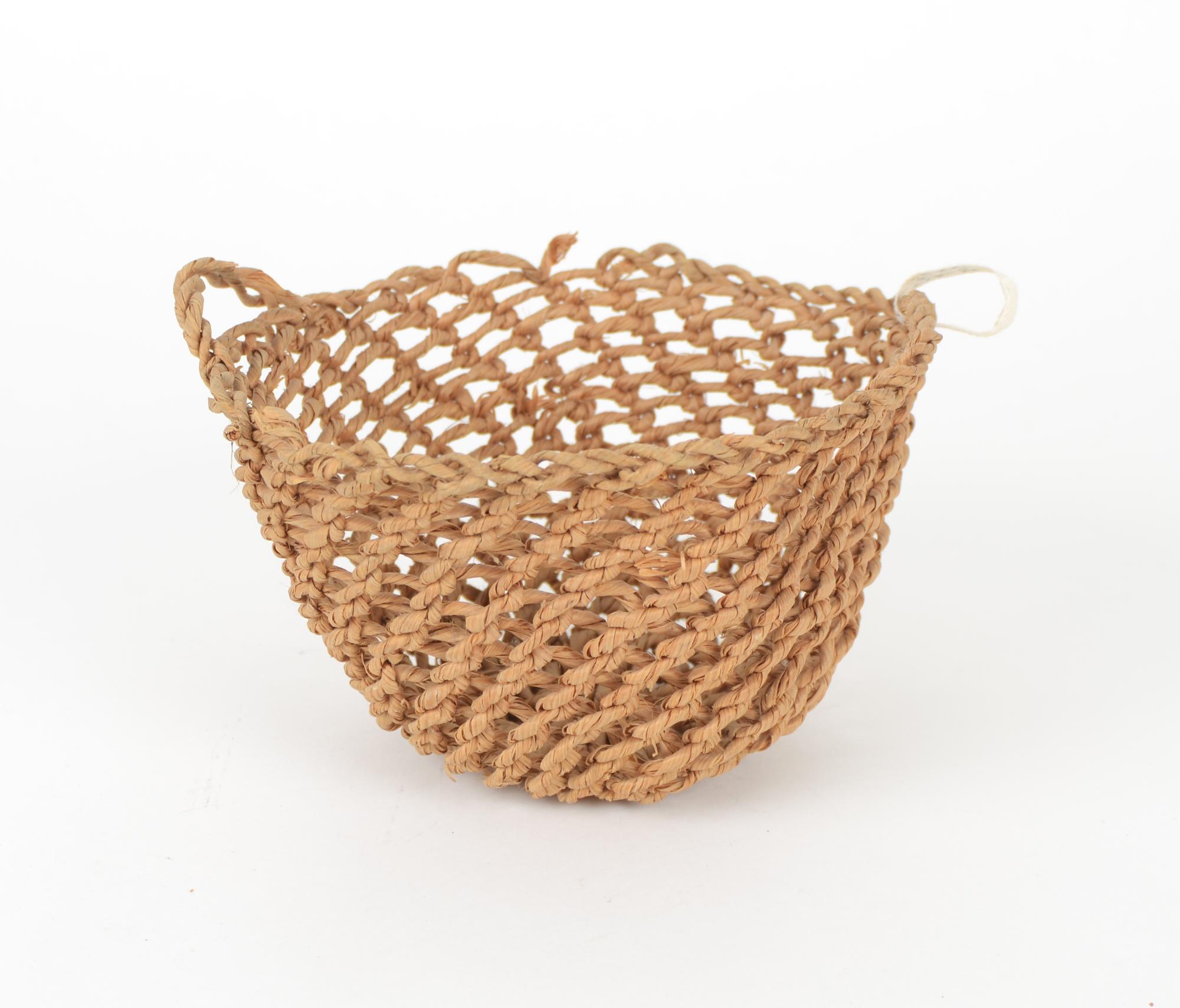 Korg, s.k." bastabinne" eller" sillakasse" tillverkad av granbast och tekniken består av enkla halvslag, så kallad öglebinning. Två handtag. Mindre skada i överkant.