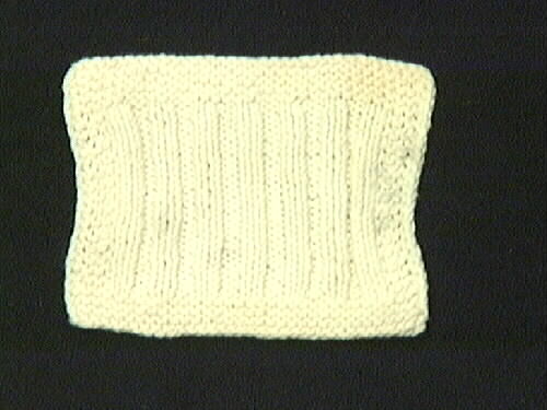 - Stickningsprov, fyrkantigt. Visar rätstickning runt om och resårstickning i mitten, av vitt bomullsgarn. Tillverkat av Maria Hellberg, Lugna Hemmet, Lidköping (f 1852, d 1930). Gjorde proverna på Hulda Lundins seminarium, Stockholm, 1892. Se även: 5M16-7257, 7258, 7259, 7260, 7262, 7263, 7264, 7265, 7266, 7267, 7268, 7269, 7270, 7271, 7272, 7273, 7274, 7275, 7276, 7277, 7278, 7279, 7280, 7281, 7282, 7283, 7284, 7285, 7286.