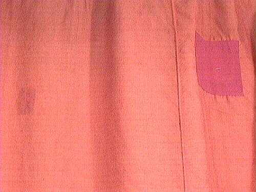 Smutsig och lagad. Malskador och malrester.