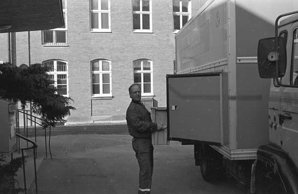 7. 07.35 Bassjukhuset, utnför baren. Bassjukhuset får leverans av dagens post och paket av Roland Wejsland.