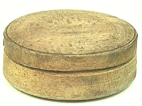 Smörask, rund med lock, av bok. Från Tådene.