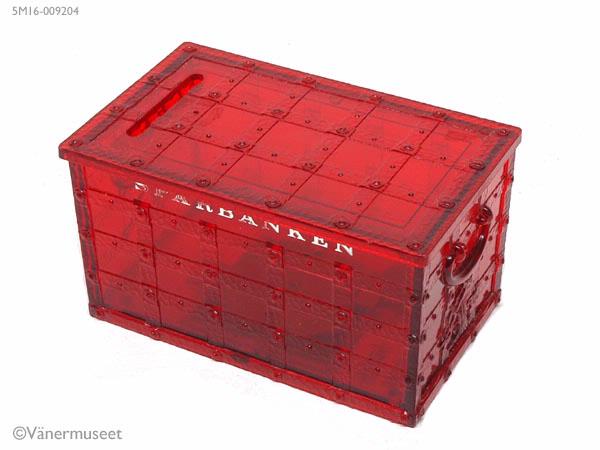 - Sparbössa i hårdplast, röd. Gjord som en liten skattkista. Gjutet mönster. Ett sparbanksträd på varje kortsida. På långsidan text "SPARBANKEN". I botten en lucka för nyckel. Text: "M-K-TUGTE Ges-Gesch. Helsinki Finland". Kultursekreteraren tog vara på den på Varmbadhuset när detta revs 1978. Två kopparmynt finns med.