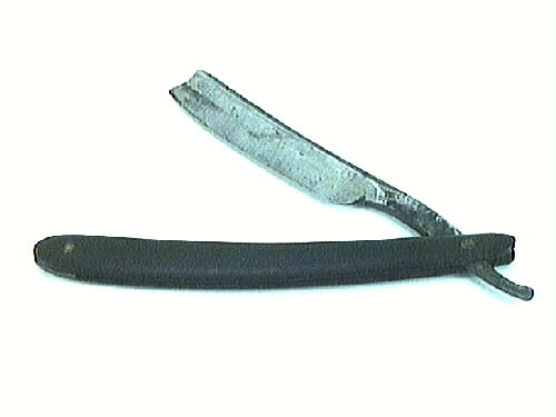 - Rakkniv med blad i stål. Skaft i svart ebonit. Knivbladet kan fällas in i handtaget. Bladet är fäst i en kopparnit. Den är lagad. Handtaget är svagt böjt. På knivbladet finns ett fragment av firmastämpeln: "MILLF & SON, ..WORK".