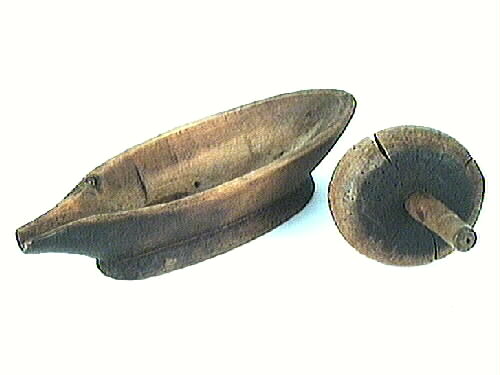 Kaffekross i snipform. En pip i ena änden. Foten är 21 mm hög. Rullen är 125 mm i diameter och 52 mm tjock. Handtaget i rullen är runt och fastkilat med små träbitar och en spik. Rullens sidor är svärtade liksom skålens yttre sidor. En del kvisthål, ett större på undersidan med sprickor 30 mm. På rullen finns ett antal större och mindre sprickor. Kaffekrossen är maskäten. Med handtagens hjälp rullar man trähjulet i den snipformade skålen. Under botten står det "I.L.S." och årtalet "1827". Tvåan är otydlig. "Önum" står skrivet med blyerts på var sin sida om årtalet.