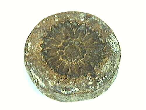 Gjutform av pastellage, en massa av gips, krita, limvatten och linolja för gjutning av ornament på lister och tavelramar o dyl. Rosettform. Har troligen tillhört Carl Thorsell, förgyllare i Lidköping på 1850-talet.