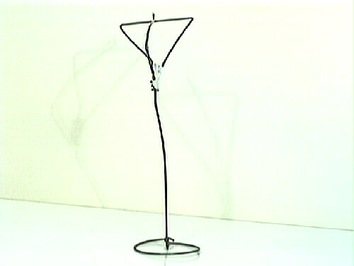 Hatthållare,triangelformat, fjädrande bordsfäste och närmast rund hållare. Ester & Hilmer Karlsson, föräldrar till Irene Andersson. Hatthållaren inköpt av kringvandrande försäljare/luffare.
