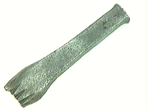 Mönsterpuns av järn. Rak med taggar i en båge. Användes vid läderarbeten. Man använde en hammare eller klubba och slog i punsen i lädret, när den avlägsnades lämnade den efter sig ett mönster.