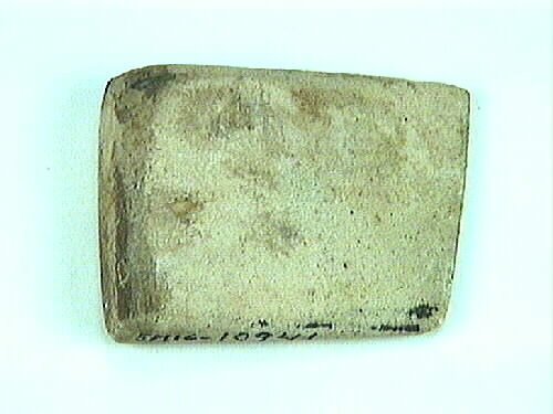 Slipsten av pimpsten. Tunn, platt, ena kanten formad till en egg. Har troligen tillhört Carl Thorsell, förgyllare i Lidköping från 1850-talet.