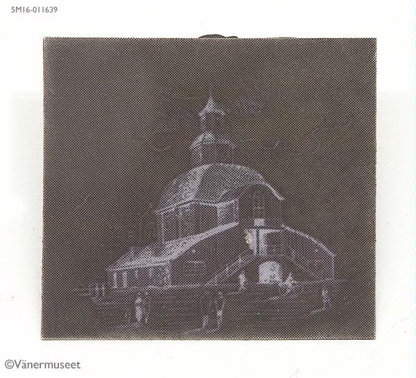 Kliché av grafisk plåt, bild av Rådhuset på Lidköpings torg.