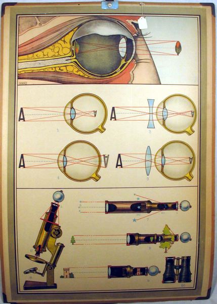 Plansch visar ögat, kikaren samt teleskopets optiska principer.