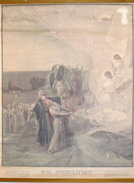 - Skolplansch i flerfärgstryck "Jesu Himmelsfärd". Längst ner i vänstra hörnet står "Tafla af Prof. J. Kronberg". och längst ner i det högra står "Tryckt i K. Boktr. P.A. Norstedt & Söner 1905". Träbeslag upptill och nedtill. Tillhör skolsamlingoch har förvarats på Kylanderskolans vind.