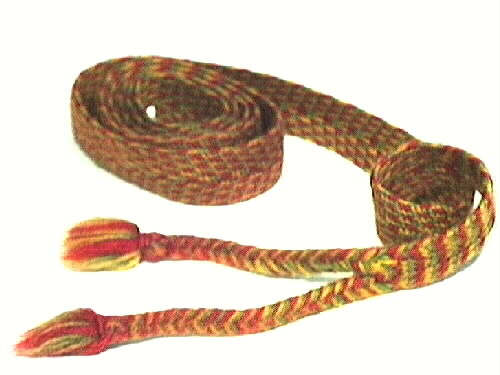 Flätat i tre olika tekniker avslutat med tofs, dubbel.