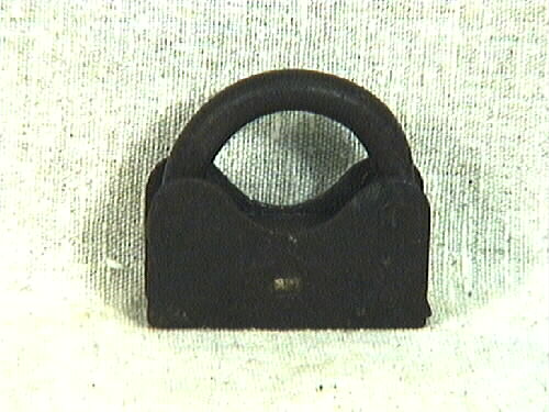 Bultlås av järn där bygeln är fast i ett rektangulärt block. Behandlat med paraffinolja.