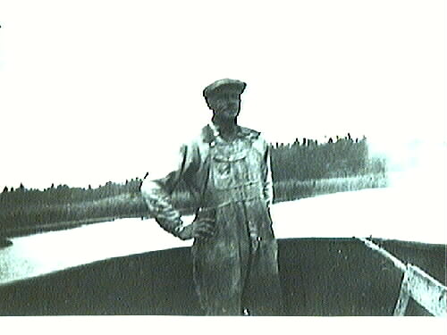 Karl Gilbert Wallroth, Kållandsö, ombord i sin motorbåt. Med den drog han timmer åt skogsbolagen.