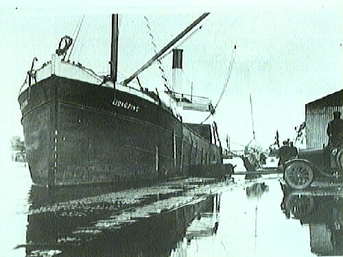Fotokopia med ångfartygetS/S Lidköping (tidigare Karin). troligtvis taget vid det exeptionella högvatten som rådde våren 1927.