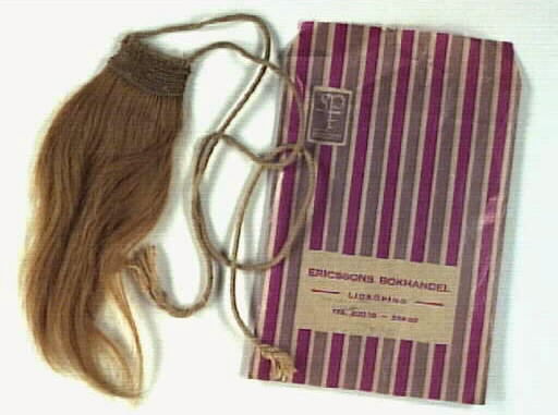 Lösfläta. Gulfärgad, långsmal tofs. Tofsen ihopknuten i ena änden. Sliten. Föremålet kommer från Herrmanns frisersalong, Älvgatan 6, Lidköping. Dess sista ägare var Ebbe Lugner som 1982 tog över efter tre generationer Herrmann. Salongen startade 1861 och lades ner 31 december 1993.