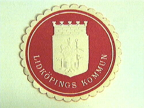 - Papperssigill, runt med uddkant och texten LIDKÖPINGS KOMMUN i vitt mot röd botten, däröver Lidköpings vapen, St Nicolai, präglat i vitt. Användes som sigill av borgmästare Arne Söderström på kommunkansliet, ex på adoptionshandlingar som skulle till utlandet (det fanns även lacksigill).