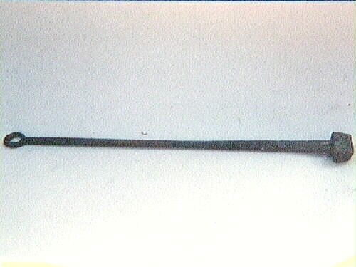 Användes för att bränna in bomärke på fiskredskap. Texten på järnet är "JAE" vilket betyder Johan Arvid Eriksson, vilken levde 1899-1964. Textens mått är: höjd 24 mm, längd: 30 mm, bredd: 15 mm. Vänermuseet i samarbete med Hammarö kommun genomförde sommaren 1997 en dokumentation av föremål i och utanför Arne Ericssons sjöbod i Rud. Cirka 200 typiska och unika fiskeredskap registrerades. Dessa föremål har brukats av tre generationer fiskare, vissa används än i dag av Arne Ericsson.