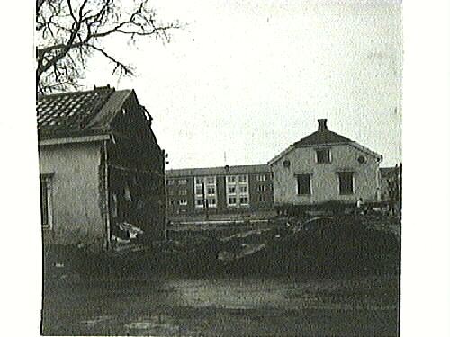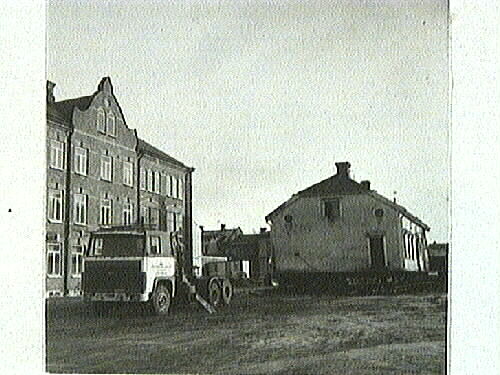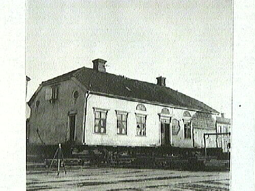 Flyttningen av Sundbeckska huset. Det så kallade "Pomonahuset" flyttas från Särnmarksgatan 18 (nuvarande adress: Målaregatan 23) och Sveagatan 15 (nuvarande adress: Sveagatan 18) i kvarteret Pomona (för att ge plats åt Särnmarkshuset i kvartenen Pomona och Pyramus) till kvarteret Mercurius tomt 9 fd tomt nr 5. Se även följande poster: 1987:0126-0139 (14 bilder, 4 sidor).
