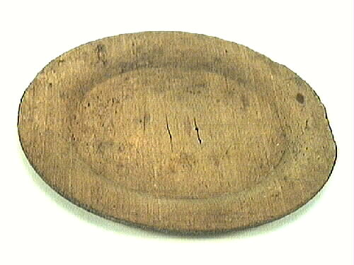 - Trätallrik, rund med fördjupning i mitten. Genomgående sprickor vilka leder till hål rakt igenom. Märkt i botten med "L C S" samt ovanför "A". Något skavd på brättet. Föremålet har tidigare varit utställt i Rackebystugan vid Lunnelid i Råda.
