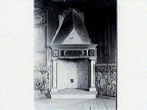 Läckö slott, öppen spis i Riddarsalen. Kopia av glasplåt.