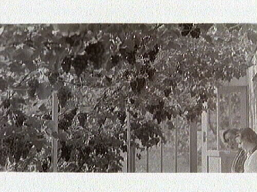 Sommarvillan, Sjövik, växthuset, interiör, Blenda Ander (f Rud, 1:a giftet Gustaf Ödelius) Rigmor Ander. Blåa druvor, kunde skördas upp till 85 kg.