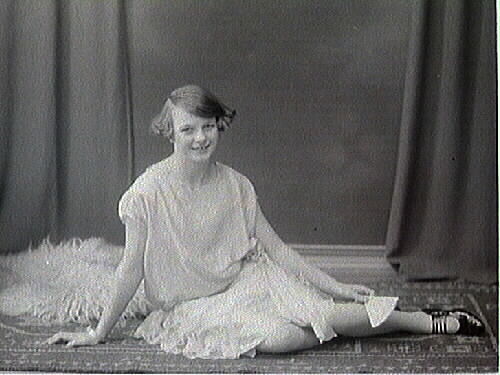 Porträtt av Rigmor Ander, yngsta dotter till Ester och G S Ander, omk 1924. Solfjädern är av tunna elfenben.