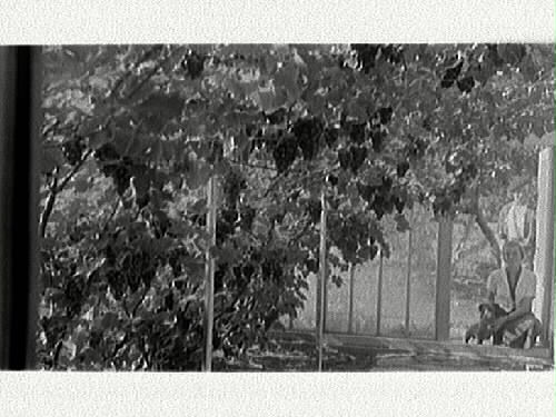 Sommarvillan, Sjövik, växthuset med vindruvor. Rigmor Ander med taxen Hanseman samt stående, G S Anders andra hustru Blenda.