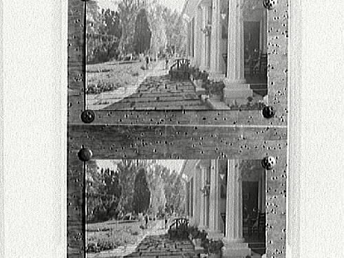 Stensättning, togs ett skeppslast med kalksten från Kinnekulle, pelarna gjorda av drivved som bärgades från Vänern. Amplar med pelargonier.