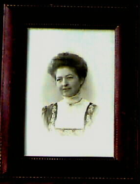 - Fotografi, inglasat i brun träram med små romber och hjärtan i guld som dekoration. Bilden föreställer Sofia Lange iklädd en höghalsad vit blus med en randig klänning över. I dess urringning finns ett vackert broderi. Föremålet har tillhört Sofia Lange (1862-1926), född Settergren, vars farmorsfar Niklas Lidbeck var född och verkade i Lidköping. Sofia Langes make, L.J. Lange, var grosshandlare i Göteborg och handlade i huvudsak med optiska artiklar. Rörelsen övertogs av Sofia Lange och senare drev hennes dotter, Elsa Lange (1890-1987), den vidare. Samlingen är skänkt av den senare, alltså direktör Elsa Lange.