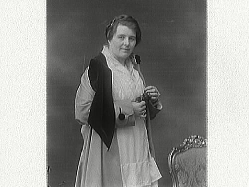 Porträtt av Ester Ander, maka till G S Ander, i ateljen. I Ateljen stod förgyllda karmstolar.