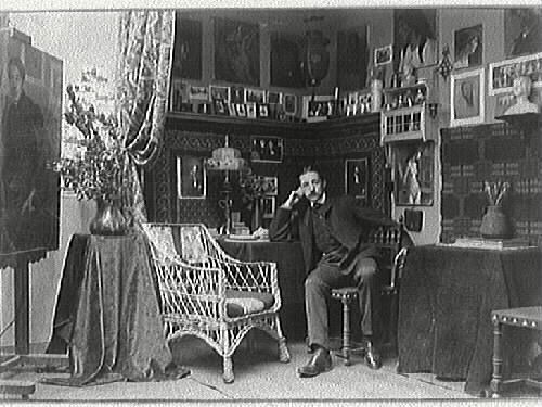 Interiör från ateljé, Paris. Ev. porträttmålaren Edvard Berggren (Se Svenska Bibliografiska lexion.)