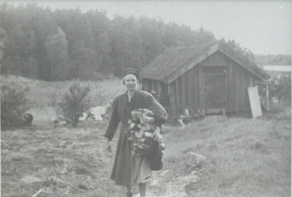 - Ada Vedebrand, Lindholmen, Spåröhuvud, Strö. A.V var född Sjöberg 1905 på torpet Ersbacken, under Traneberg. Hon var gift med fiskaren och småbrukaren Viktor Vedebrand, Spåröhuvud. Hon dog 1975. Den närmast liggande delen av uthuset på fotot var av gammalt datum. När den siste av Vedebrandsläkten flyttade från Spårön på 1960-talet brändes flera av uthusen ner men den äldsta delen av detta uthus revs och forslades till Otterstads hembygdsgård för att byggas upp. Arbetet med detta dröjde och till sist var virket i så dåligt skick att uppbyggande var otänkbart, det eldades upp. Enligt Karl Vedebrand (Viktor Vedebrands son) hade huset torvtak från början men torven ersattes med "enklackigt" tegel som var av olika fabrikat. En del tegel var märkta med S och kom från tegelbruket vid Stola, andra var märkta med T och kom från tegelbruket vid Eriksberg som hörde till Traneberg. Uthuset kallades "visthusboden". I den äldsta delen hade Viktor Vedebrand (f 1871 d 1957) snickarbod, därintill byggdes noteboden och längst ner mot sjön fanns vedskjulet.