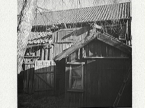 Lidköping, gårdsinteriör. Enligt baksidetext av nyfnr 1987:0531 låg denna gård vid Målaregatan i Nya staden. Låg sannolikt i kvarteren Hermod, Morpheus, Priamus eller Odysseus.