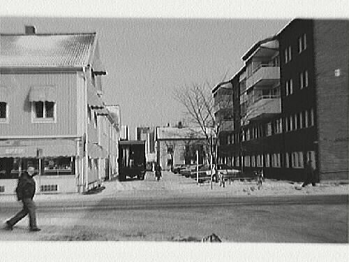 Lidköping, Hagagatan mellan kvarteren Kopparslagaren och Målaren. Dokumentation stadskärnan 1988. Fotot är taget från söder.
