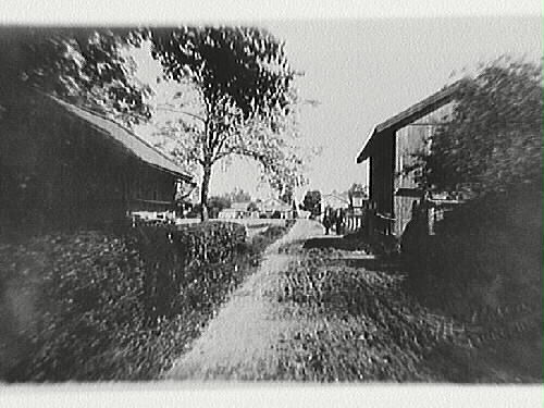 - Lidköping, Kvarngatan med omgivande bebyggelse. Uthuset till vänster tillhörde fröknarna Smedman. Byggnaden ligger i nuvarande kvarteret Giraffen. Till höger Norddalens ladugård, ägare Oskar Björklund. Byggnaden ligger i nuvarande kvarteret Grävlingen. Längst ner till höger skomakare Gillgrens fastighet, det låga huset till vänster om gatan var Gillgrens skomakarverkstad. Här fanns även hyresrum. Där bakom syns gaveln på fastigheten Kvarngatan 4.
