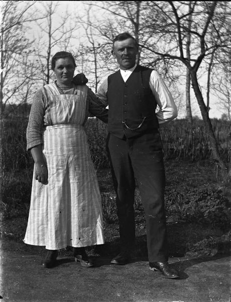 Hulda och August Andersson Stalltorp Söne. Fotot är förmodligen taget under våren.