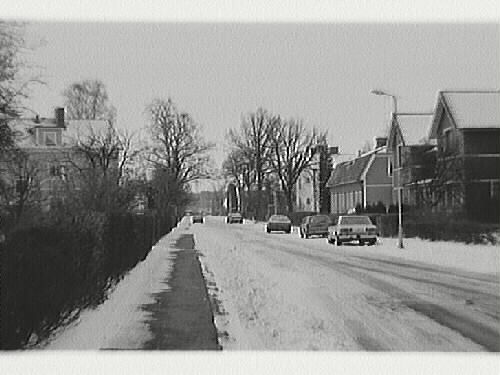 Västergatan/Rådagatan vid kvarteret Vitsippan, från NNÖ.
