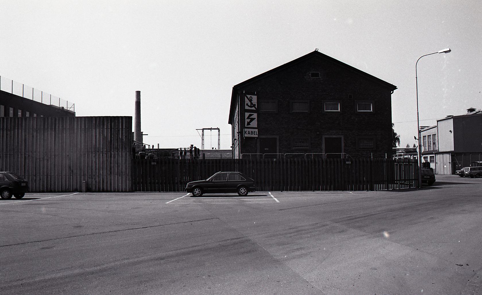Byggnadsdokumentation av Meken. Översikt av Lidköpings Elverk på Lidköpings Machine Tools:s fabriksområde. Kvarteret Städet tomt nr 11.