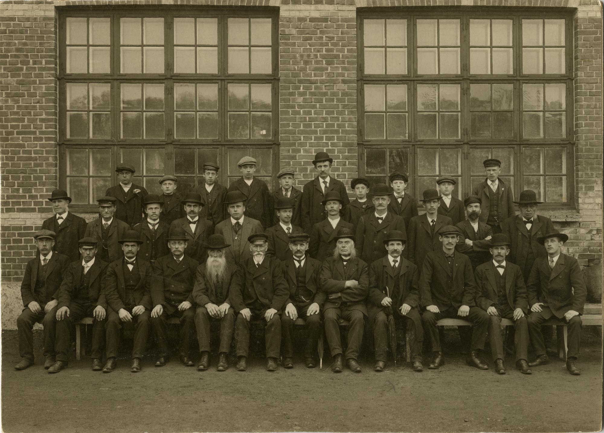 Arbetare och verkmästare tändsticksfabriken Sirius. Nedre raden från vänster: