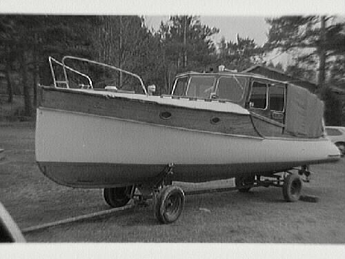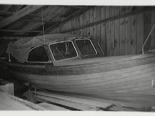Nr 4-5 Motorbåt. Den sista som börderna Johansson byggde år 1967. Sten-Olof Wahlberg håller sig i räcket (bild 4).