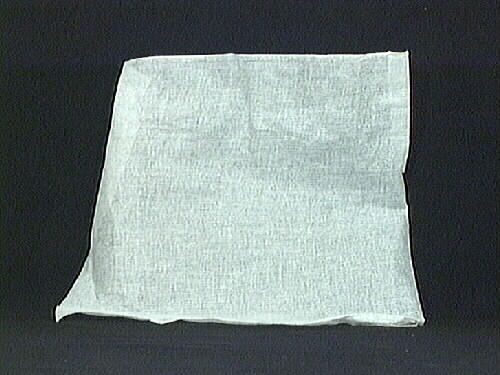 Gasväv av vit färg. Delar av gasväven är sönder klippta. Gasväven är upprullad på en tillhörande papprulle.