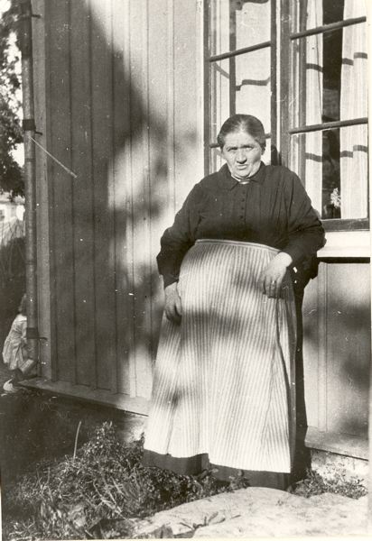 Porträtt av Gustava Holm vid bostaden Kvarngatan 6, Lidköping.