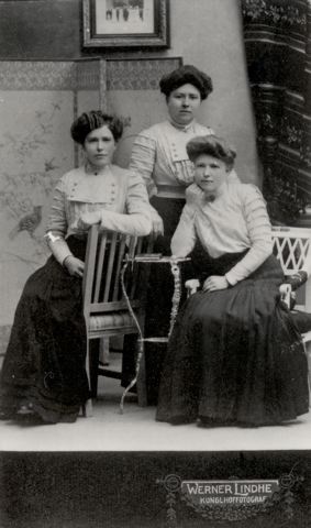 Systrarna Wennerbom, Lidköping. Från vänster: Beda, Elin och Ada. Födda i Närefors, Uvered församling nära Järpås, där fadern var kvarnägare. Beda och Elin var hotellägare i Lidköping. Först till Centralhotellet i kvarteret Gåsen 1. Därefter till Järnvägshotellet i kvarteret Filaren. Systern Ada var servitris hos sina systrar år 1905.