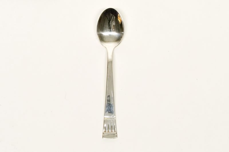 Mockasked i nysilver. Märkt på skaftets undersida: MEMA ALP 60 SWEDEN, MINNE FRÅN SÖNDAGSSKOLAN.
