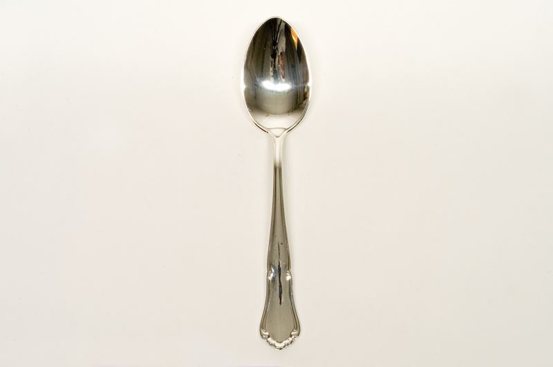 Matsked i nysilver. Modell Saga. Märkt på skaftets undersida: SAGA, EXPRALPNS60, MEMA.