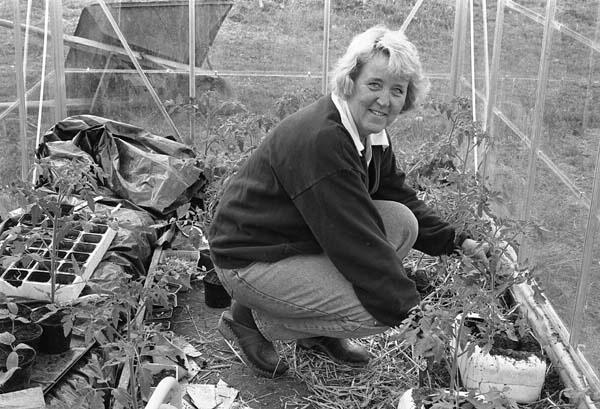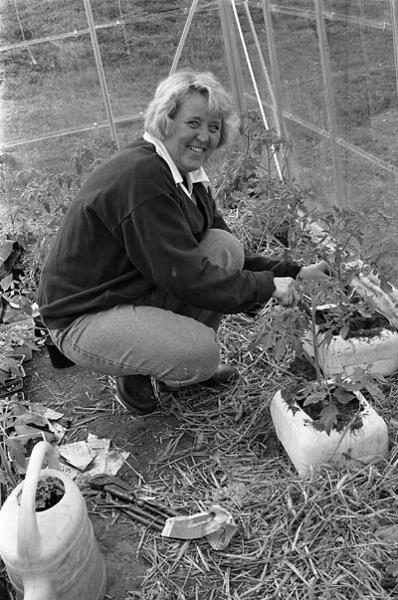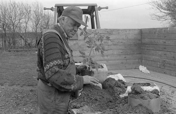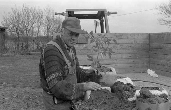 31-31. Bertil Andersson fyller på jord för tomaterna.