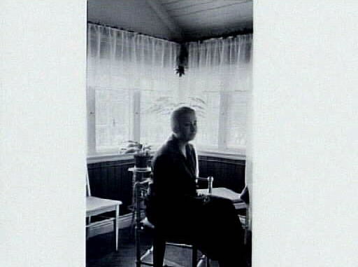 Ingrid Andersson läser brev i vrån. Iklädd i morgonrock.