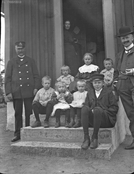 Vårgårda, familjen på trappan till bostaden.