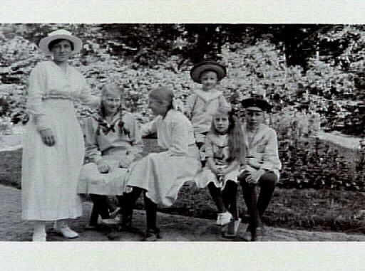 - Astrid Molander från Norge på besök hos släkten i Lidköping. Från vänster Astrid Molander, Viola Karlsson (släkting på besök från Uddevalla), Ingrid, Sten, Dagmar och Tage Andersson i villa Lindsborgs trädgård på Mellbygatan 20. Personerna på fotot är iklädda sommarkläder.